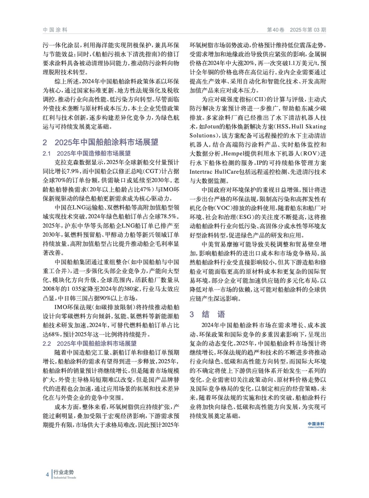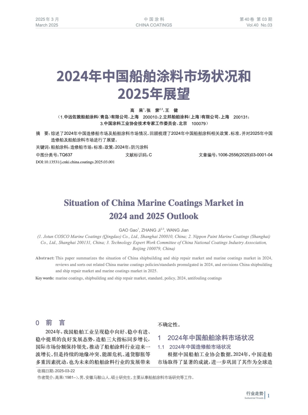 綜述了2024年中國造修船市場及船舶涂料市場情況,回顧梳理了2024年中國船舶涂料相關政策、標準,并對2025年中國造修船及船舶涂料市場進行了展望。