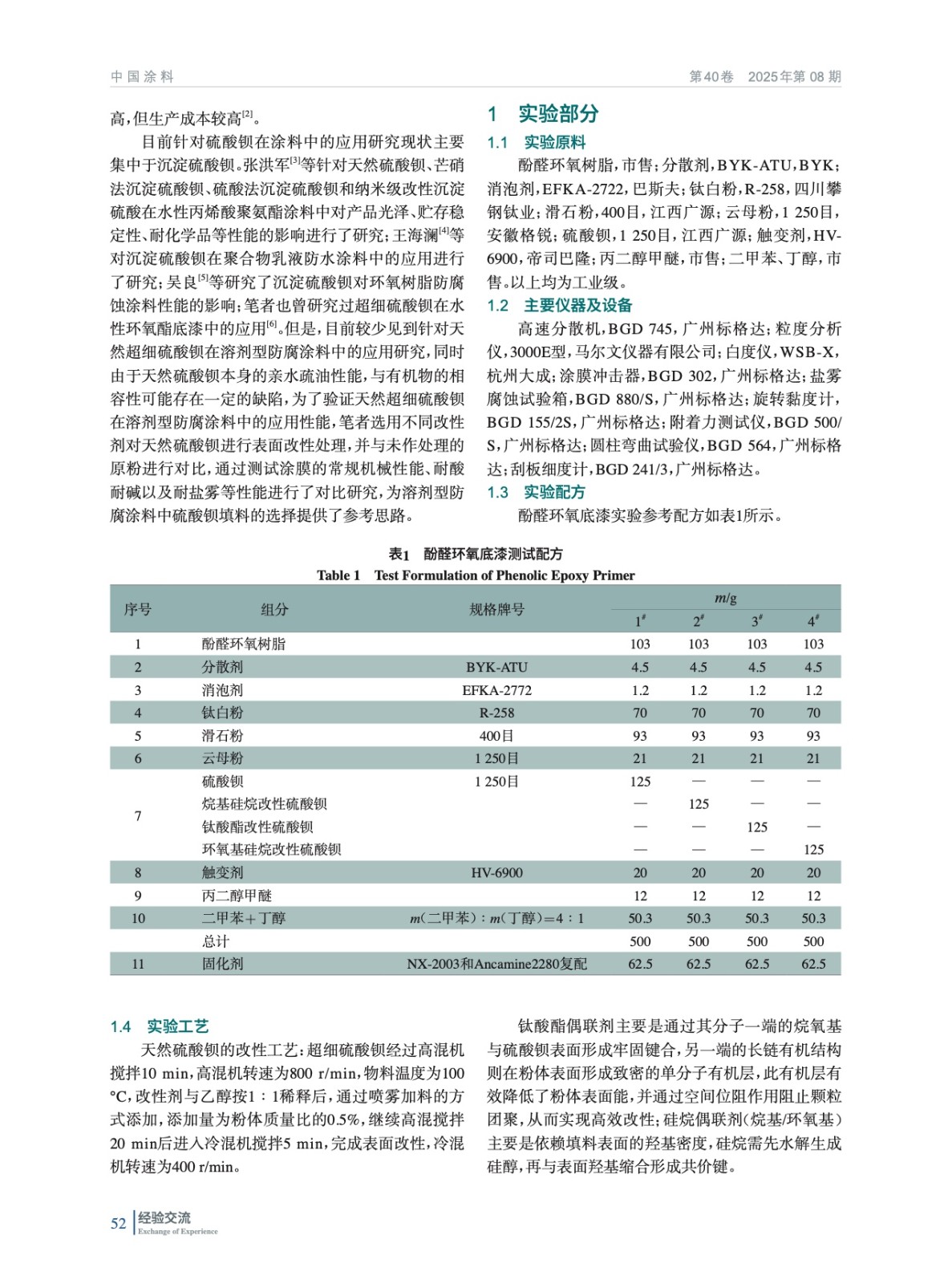 改性天然超細硫酸鋇在酚醛環氧底漆中的應用研究