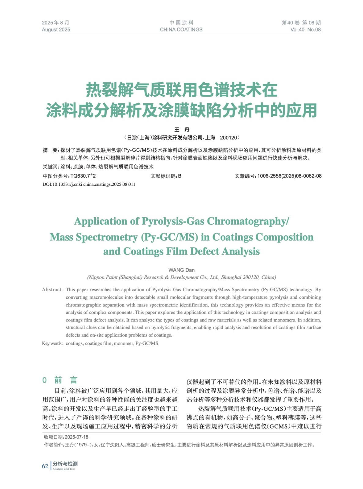 熱裂解氣質(zhì)聯(lián)用色譜技術(shù)在涂料成分解析及涂膜缺陷分析中的應(yīng)用