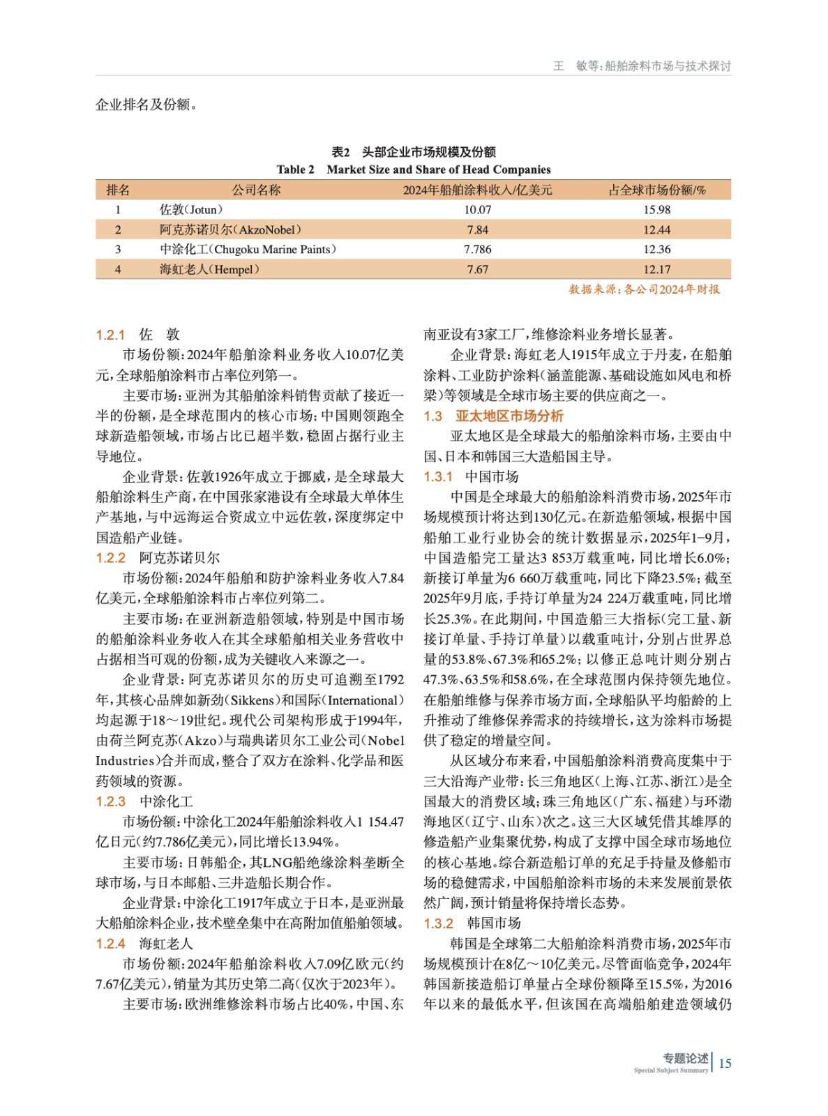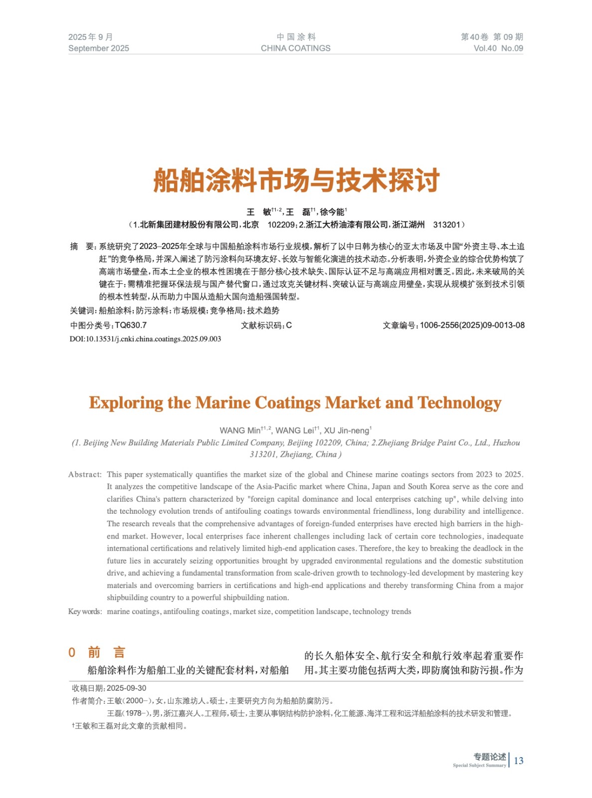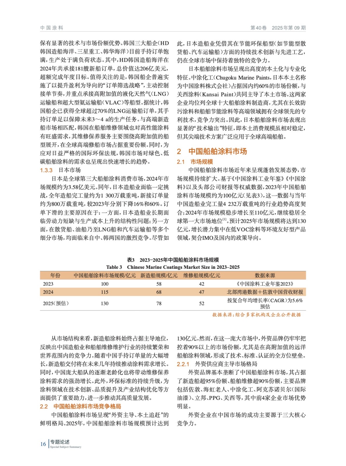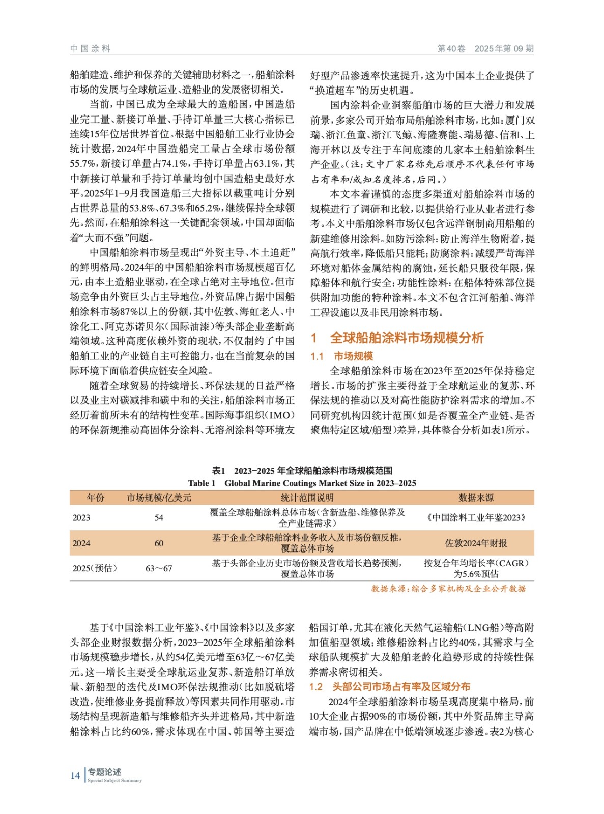 摘要:系統(tǒng)研究了2023?2025年全球與中國(guó)船舶涂料市場(chǎng)行業(yè)規(guī)模,解析了以中日韓為核心的亞太市場(chǎng)及中國(guó)“外資主導(dǎo)、本土追趕”的競(jìng)爭(zhēng)格局,并深入闡述了防污涂料向環(huán)境友好、長(zhǎng)效與智能化演進(jìn)的技術(shù)動(dòng)態(tài)。分析表明,外資企業(yè)的綜合優(yōu)勢(shì)構(gòu)筑了高端市場(chǎng)壁壘,而本土企業(yè)的根本性困境在于部分核心技術(shù)缺失、國(guó)際認(rèn)證不足與高端應(yīng)用相對(duì)匱乏。因此,未來(lái)破局的關(guān)鍵在于:需精準(zhǔn)把握環(huán)保法規(guī)與國(guó)產(chǎn)替代窗口,通過(guò)攻克關(guān)鍵材料、突破認(rèn)證與高端應(yīng)用壁壘,實(shí)現(xiàn)從規(guī)模擴(kuò)張到技術(shù)引領(lǐng)的根本性轉(zhuǎn)型,從而助力中國(guó)從造船大國(guó)向造船強(qiáng)國(guó)轉(zhuǎn)型。