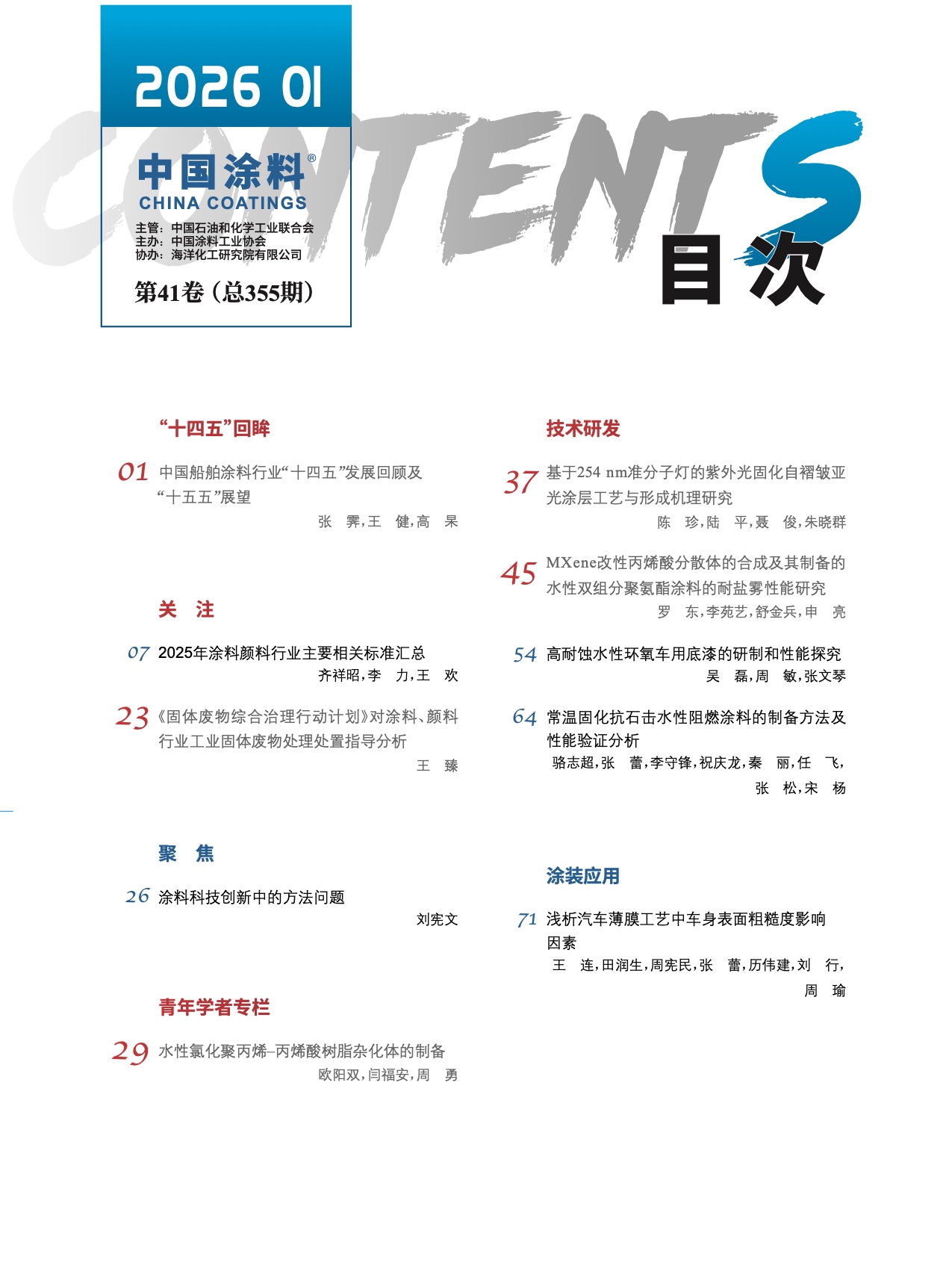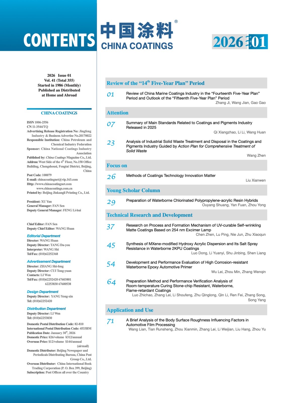 《中國涂料》2026年第01期版權及目錄