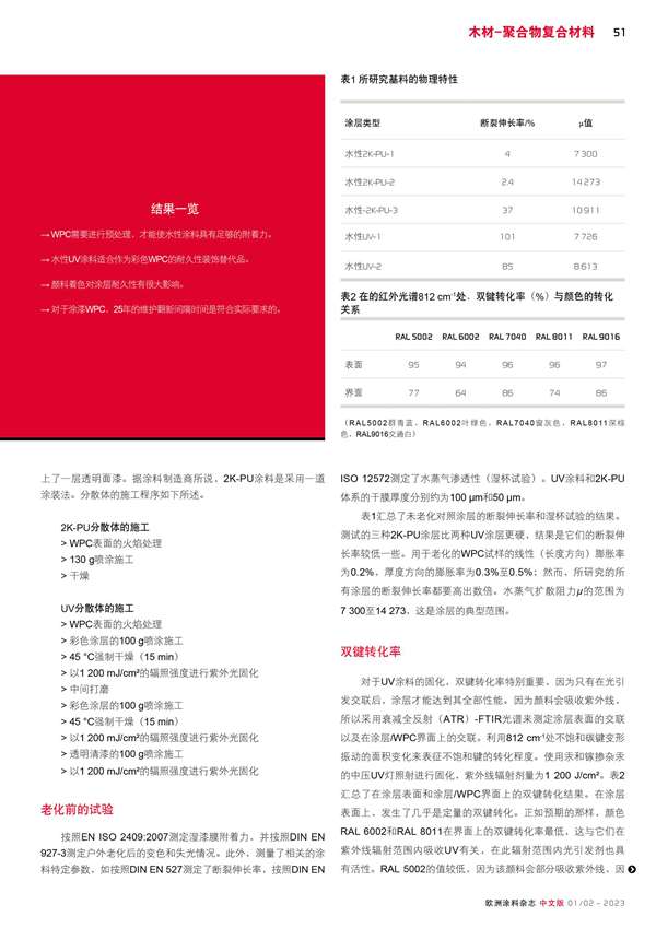 適合戶外使用的水性雙組分聚氨酯涂料(Hydro-2K-PU)和水性紫外光固化涂料(Hydro-UV)