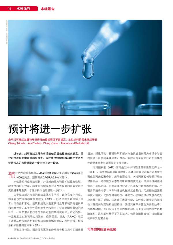 由于對可持續(xù)發(fā)展和環(huán)境責任的重視程度不斷提高,水性涂料的需求持續(xù)增長