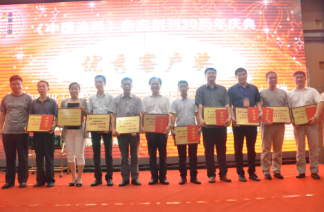 2016年8月23日晚,《中國涂料》雜志創刊30周年紀念活動在青島隆重舉行。為了鼓勵先進,弘揚正能量,在《中國涂料》雜志創刊30周年之際,中國涂料工業協會特別對30年來在《中國涂料》發展中做出突出貢獻的個人和單位給予表彰。