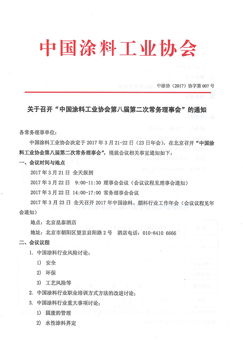 下載:關于召開“中國涂料工業協會第八屆第二次常務理事會”的通知