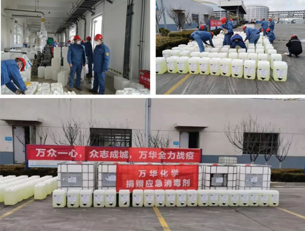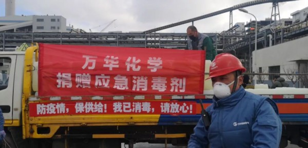 1月29日下午,萬華化學副總裁陳毅峰立即組織煙臺生產基地、HSE部、市場部、采購部、萬華氯堿熱電公司等相關部門召開緊急會議,研究商討應急消毒液供應方案。會上,陳毅峰表示:非常時期,向社會無償供應消毒液,背后體現的是萬華勇于承擔社會責任的擔當。會議結束后,各相關部門立即執行各自分配的任務,共同協作配合,全力投入到消毒液供應任務中。