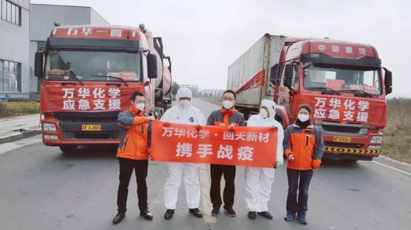 疫情當前,萬華化學克服困難,快速組織,輾轉千里運送的不只是生產防疫救災物品的原材料,更是一份眾志成城、同舟共濟的信心和力量!