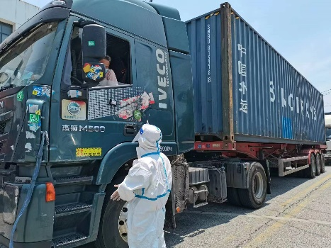 在方案的執(zhí)行中,同事們也走出自己的工作范圍,參與到整個(gè)運(yùn)輸?shù)牧鞒蹋柰ㄓ龅降摹捌款i”。從找供應(yīng)商,到根據(jù)政策要求找到合適的車輛和司機(jī),與全球業(yè)務(wù)服務(wù)部及工廠相關(guān)同事群策群力,準(zhǔn)備相關(guān)材料辦理手續(xù)、敲章,接車輛和司機(jī)、給貨車貼封條,帶司機(jī)去指定地點(diǎn)消殺、去倉(cāng)庫(kù)裝卸貨物,再護(hù)送司機(jī)離開出發(fā)地等。