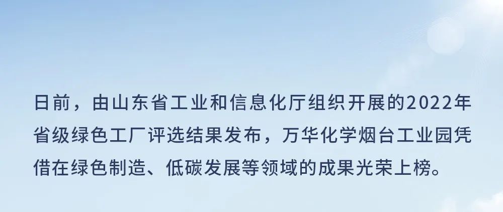 綠色工廠|萬華化學(xué)煙臺(tái)工業(yè)園獲評2022山東省綠色工廠