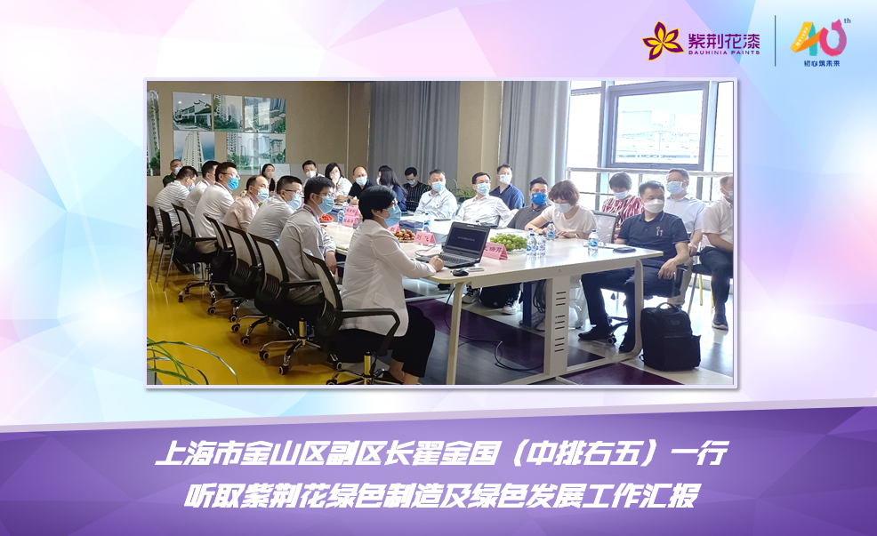 7月31日上午,上海市金山區副區長翟金國、上海市經信委節能和綜合利用處處長黃捷一行蒞臨紫荊花上海金山大型自動化生產基地調研指導工作,紫荊花新材料集團、金山生產基地相關領導及職能部門負責人陪同。