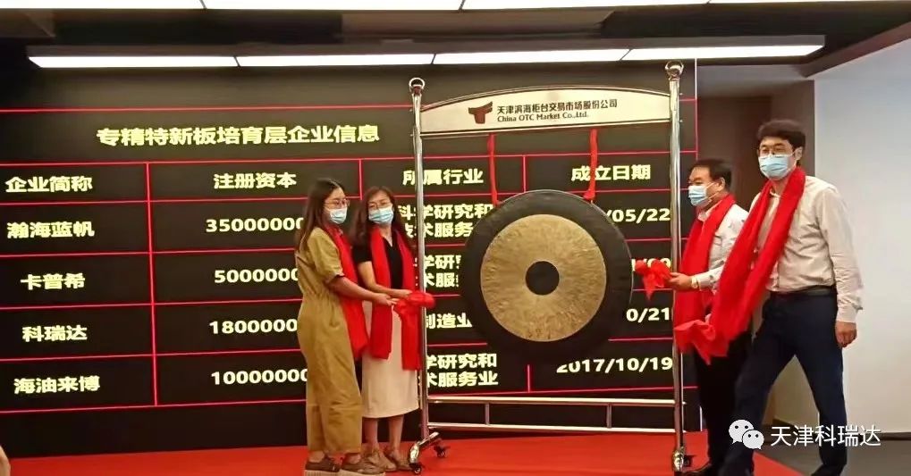 2022年8月3日上午,“專精特新板”企業(yè)掛牌儀式在濱海基金小鎮(zhèn)舉辦。天津科瑞達(dá)與和能人居、綠視野、精銳精密等10家企業(yè)為此次儀式鳴鑼掛牌,成功登陸資本市場。