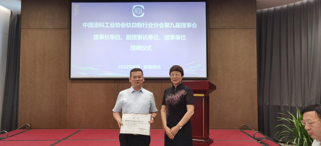 向中國涂料工業(yè)協(xié)會(huì)鈦白粉行業(yè)分會(huì)理事單位頒發(fā)證書