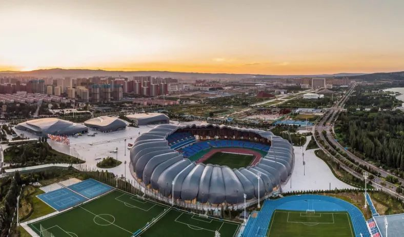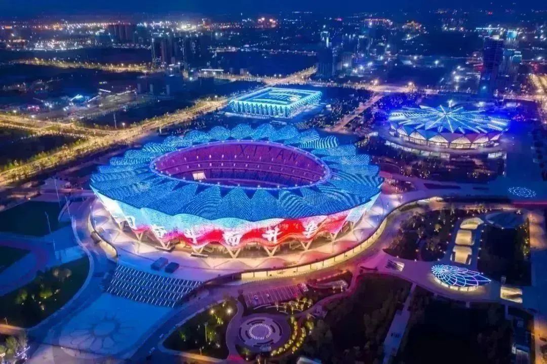 西安奧體中心是第十四屆全運會的主場館,由主體育場、體育館和游泳跳水館組成的,可提供高標準的專業比賽和演出場所,并為國內、國際賽事配備專業的田賽、競賽、足球訓練場和室內綜合訓練館。整個奧體中心以“絲路啟航 盛世之花”為主題設計。其中,體育場別名“長安花”,包含6萬個座位,起伏的屋面和立面構成舒展的體量和豐富的光影,啟發關于絲路的無限想象。