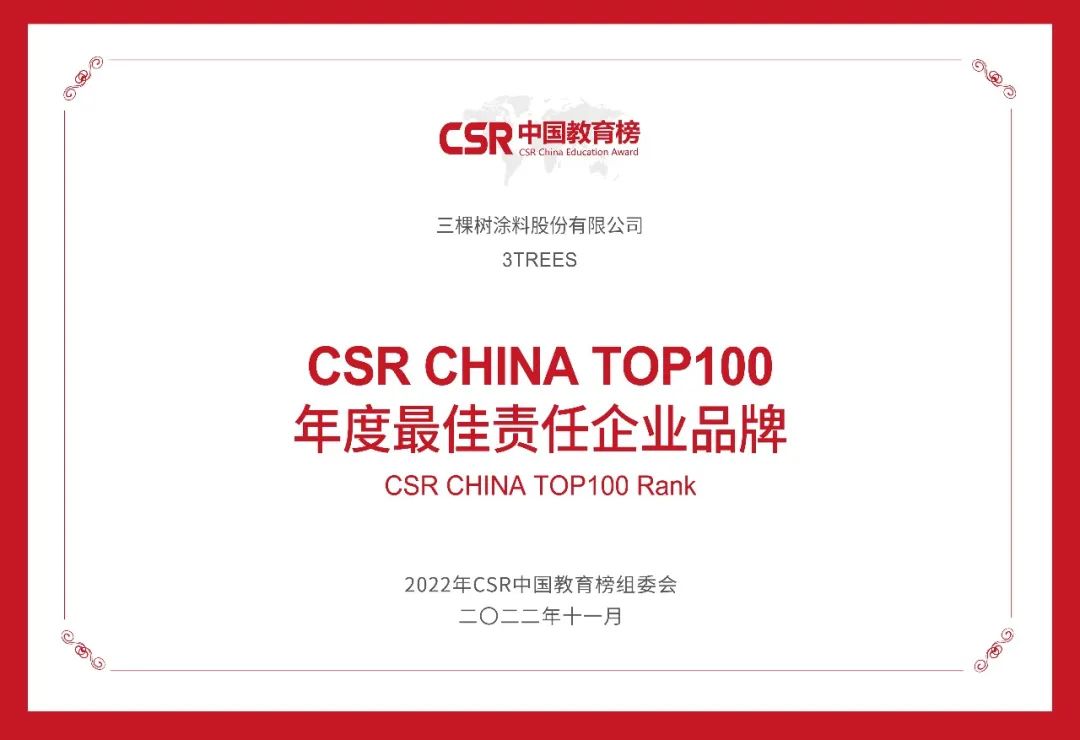 三棵樹涂料股份有限公司榮膺“CSR CHINA TOP100 年度最佳責(zé)任企業(yè)品牌”稱號