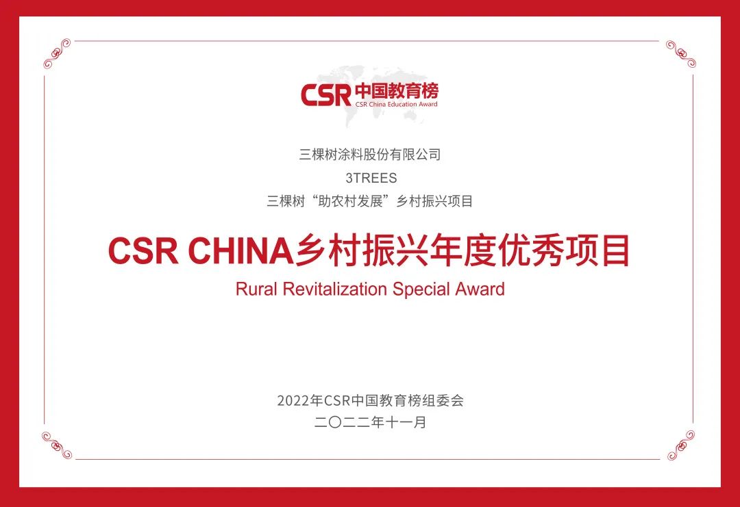 三棵樹“助農(nóng)村發(fā)展”鄉(xiāng)村振興項目榮獲CSR CHINA鄉(xiāng)村振興年度優(yōu)秀項目