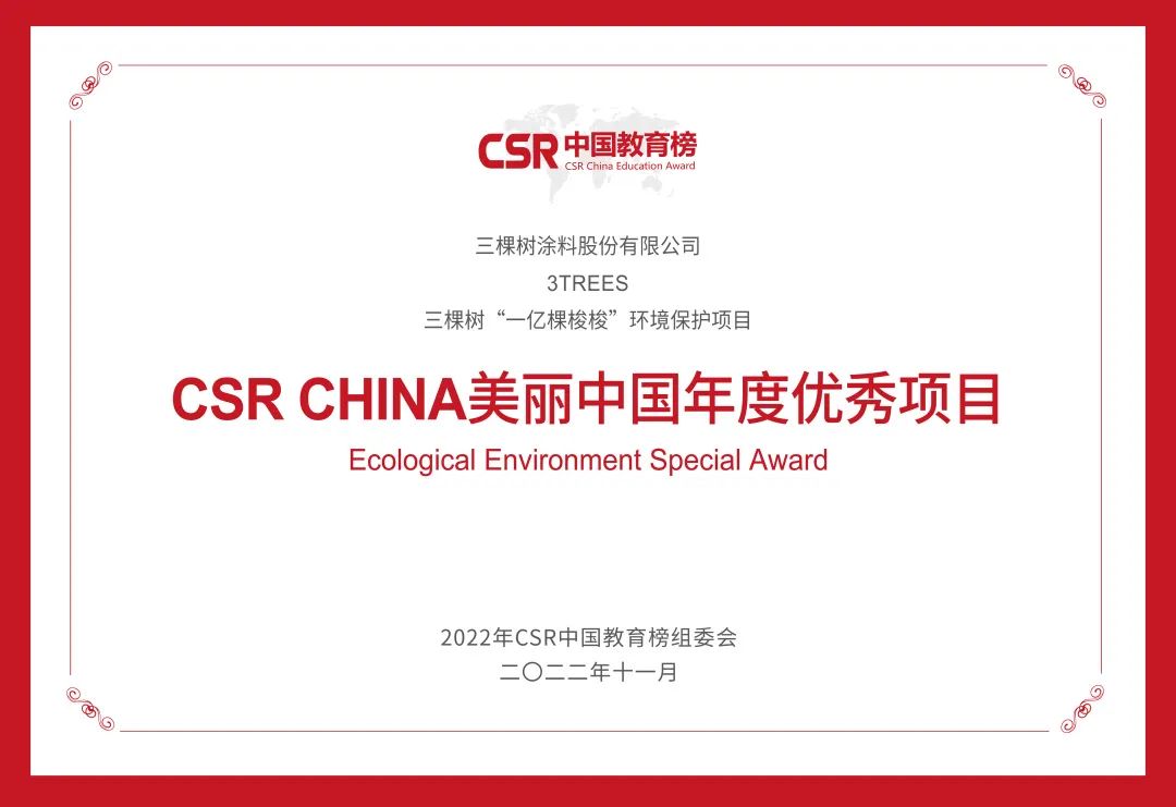 近日,2022年企業(yè)社會責(zé)任教育項目優(yōu)秀案例征集暨第六屆CSR中國教育榜獎項正式發(fā)布。三棵樹憑借在環(huán)境保護(hù)、鄉(xiāng)村振興兩個方面持續(xù)社會貢獻(xiàn),從百家中外企業(yè)中脫穎而出,榮膺“CSR CHINA TOP100 年度最佳責(zé)任企業(yè)品牌”稱號;同時,三棵樹“一億棵梭梭”環(huán)境保護(hù)項目榮獲“CSR CHINA美麗中國年度優(yōu)秀項目”;三棵樹“助農(nóng)村發(fā)展”鄉(xiāng)村振興項目榮獲“CSR CHINA鄉(xiāng)村振興年度優(yōu)秀項目”。