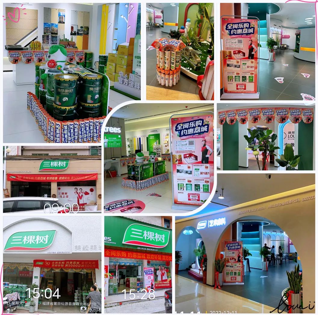 “全閩樂購 約惠荔城”三棵樹專場年終促消費活動在2022年12月9日-31日盛大開展,莆田荔城區政府及三棵樹集團共同注資百萬現金促消費,通過云閃付平臺立減,門店產品讓利,實實在在讓老百姓獲得實惠,提升廣大業主的裝修欲望,提振消費信心,帶動莆田GDP發展。