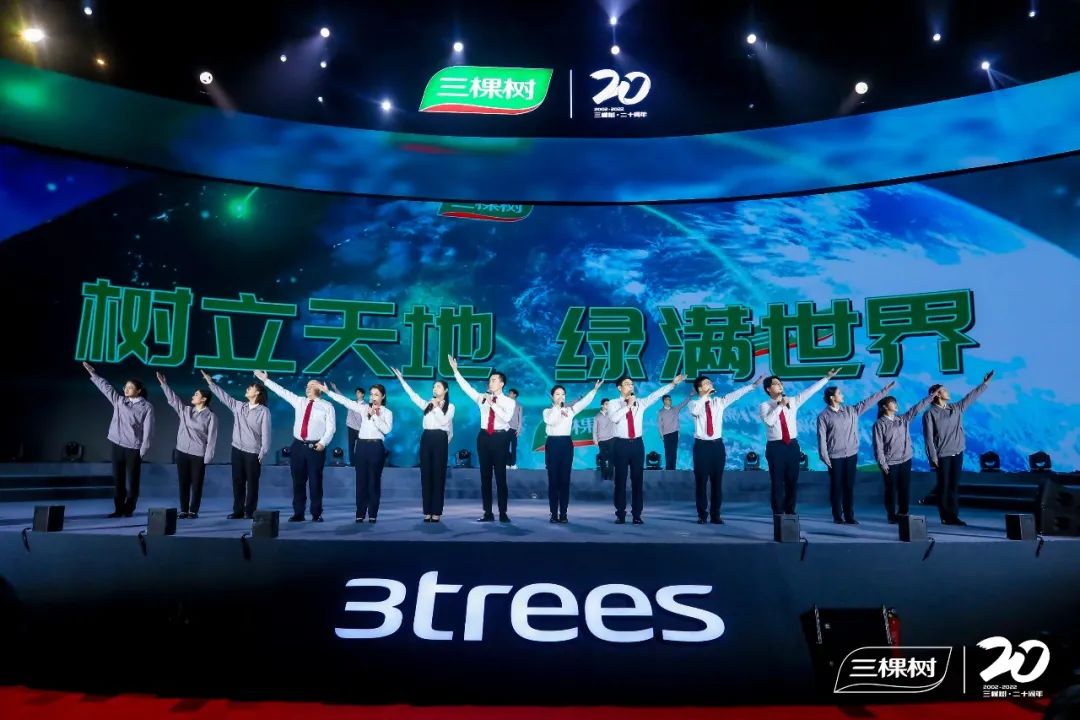 三棵樹品牌代言人武大靖、谷愛凌、中國國家短道速滑隊(duì)通過視頻表達(dá)對(duì)三棵樹成立20周年的美好祝福。在全體三棵樹人和合作伙伴嘉賓的見證下,三棵樹“凝心聚力 二十再出發(fā)”正式啟動(dòng)。隨后,舉辦了20周年慶典晚會(huì)。