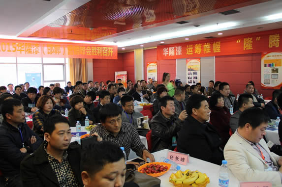 任長峰介紹2015邯鄲招商優惠政策,堅定了經營華隆涂料的信心,也激起了經銷商的訂貨熱情,尤其對水性涂料和新品興趣最濃,超過六成客戶現場下單。