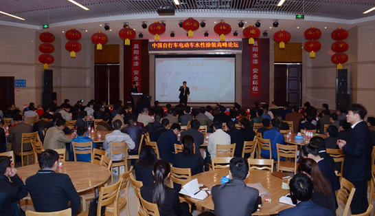 以“環(huán)保涂裝 綠色出行”為主題的中國自行車、電動車水性涂裝高峰論壇4月12日在晨陽水漆舉行。晨陽水漆高層領(lǐng)導(dǎo),中國自行車協(xié)會培訓(xùn)中心主任鄭培東,全國自行車工業(yè)信息中心副主任國長軍, 100余家自行車、電動車廠家領(lǐng)導(dǎo)和代表參加,共商水性涂裝發(fā)展大計(jì)。