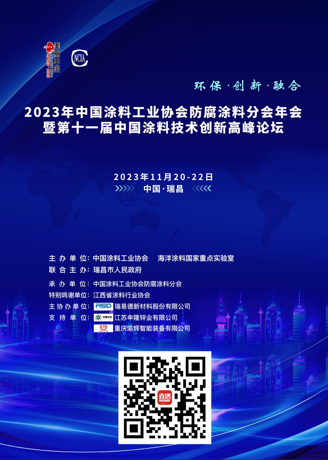 11月20-22日,由中國涂料工業(yè)協(xié)會、海洋涂料國家重點實驗室聯(lián)合瑞昌市人民政府主辦的“2023年中國涂料工業(yè)協(xié)會防腐涂料分會年會暨第十一屆中國涂料技術創(chuàng)新高峰論壇”,在素有“文化之邦”、“江南明珠”、“青銅故里”之稱的瑞昌隆重舉行。此次會議是中國防腐涂料行業(yè)的一樁盛事,也是深入學習貫徹習近平總書記考察江西親臨九江重要講話精神的生動實踐。