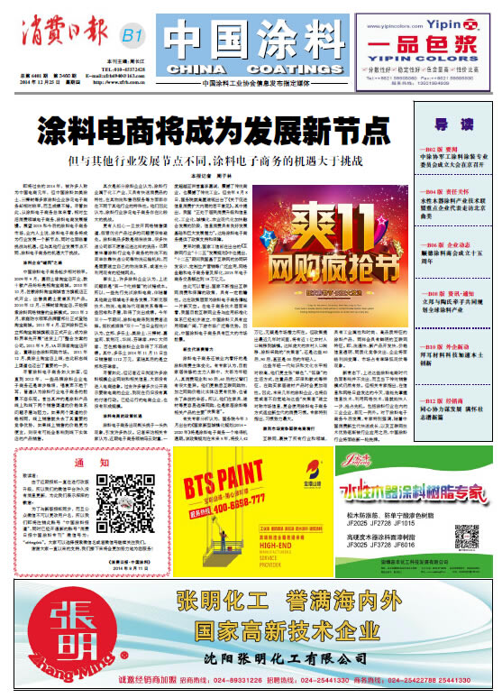 《中國涂料報》(電子版)的一切內容(包括但不限于文字、圖片、PDF、圖表、標志、標識、商標、版面設計、專欄目錄與名稱、內容分類標準以及為讀者提供的任何信息)僅供中國涂料信息網讀者閱讀、學習研究使用,未經中國涂料雜志社有限公司及/或相關權利人書面授權,任何單位及個人不得將《中國涂料報》(電子版)所登載、發布的內容用于商業性目的,包括但不限于轉載、復制、發行、制作光盤、數據庫、觸摸展示等行為方式,或將之在非本站所屬的服務器上作鏡像。否則,中國涂料雜志社有限公司將采取包括但不限于網上公示、向有關部門舉報、訴訟等一切合法手段,追究侵權者的法律責任。