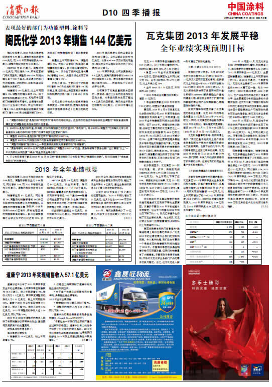 《中國涂料報》(電子版)的一切內容(包括但不限于文字、圖片、PDF、圖表、標志、標識、商標、版面設計、專欄目錄與名稱、內容分類標準以及為讀者提供的任何信息)僅供中國涂料信息網讀者閱讀、學習研究使用,未經中國涂料雜志社有限公司及/或相關權利人書面授權,任何單位及個人不得將《中國涂料報》(電子版)所登載、發布的內容用于商業性目的,包括但不限于轉載、復制、發行、制作光盤、數據庫、觸摸展示等行為方式,或將之在非本站所屬的服務器上作鏡像。否則,中國涂料雜志社有限公司將采取包括但不限于網上公示、向有關部門舉報、訴訟等一切合法手段,追究侵權者的法律責任。