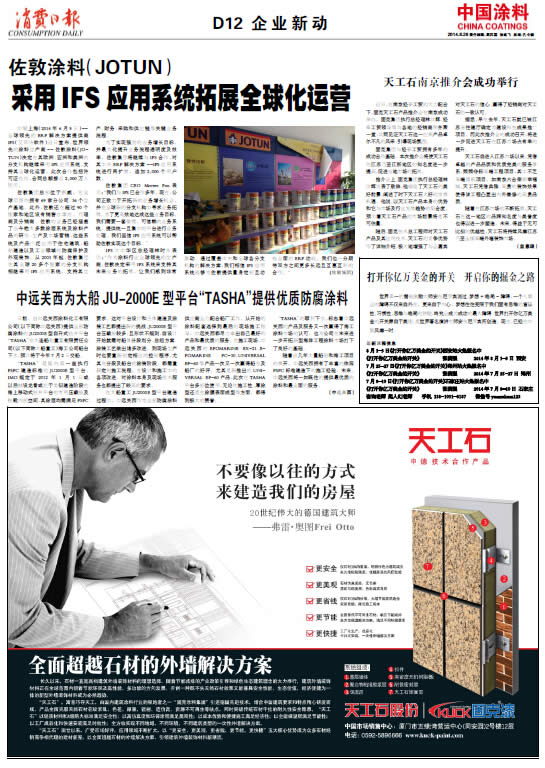 中國(guó)涂料報(bào) 2014年6月26日 星期四