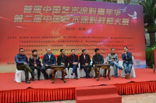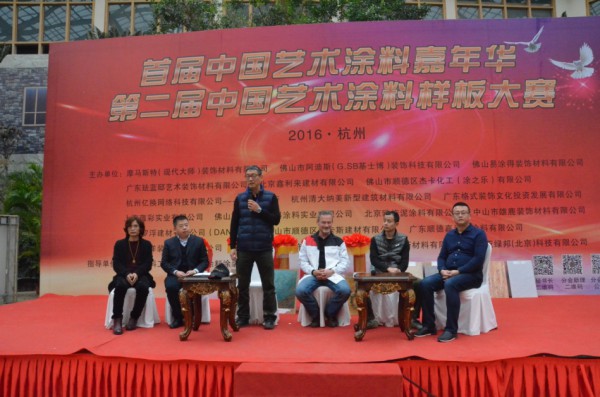 隨著中國涂料工業協會副秘書長劉杰、中國涂料工業協會藝術涂料涂裝分會理事長陶文生、秘書長梁海生、杭州裝飾裝修商會涂料委會長樓紅龍手中的紅綢飄然落下,標志著首屆中國藝術涂料嘉年華暨第二屆中國藝術涂料樣板大賽于2016年12月17日在杭州拉開帷幕。浙江省涂料工業協會秘書長馬新華、廣東省涂料行業協會秘書長呂水列應邀出席了活動啟動儀式。來自藝術涂料企業代表、涂裝工程師、下游經銷商、代理商等共計將近1 300人參加了此次活動。